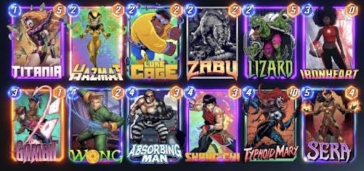 Playing the deck is pretty straightforward. The ideal situation is to get to the final turn with some combination of Sera, Wong, and Zabu all out on the field. This sets up for a final turn in which you can drop all of your reveal cards all at once. Enemy has a board full of little units, like a Patriot or Thanos deck? Hazmat them straight to hell. Are some beefy boys locking down the lanes? Gambit should cut through it with no problem.